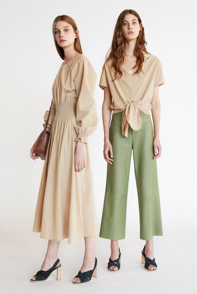 295 ezer forintot kér egy ilyen olivazöld pantallóért az ÁERON. A bézs hosszú ruha 108 ezer forintba kerül a márkánál.