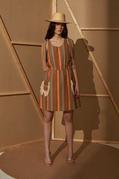 A szabásvonalakban a tervező aktuális kedvencei, mint például a '70-as évekbeli vintage ruhadarabok köszönnek vissza. Ez a csíkos ruha 41 900 forintba kerül a márkánál.