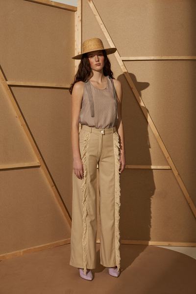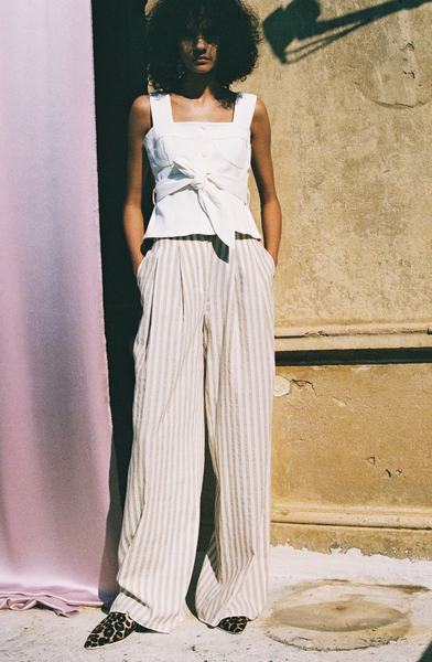 A bézs és a lenge nadrágok a Nanushkánál is megjelennek.