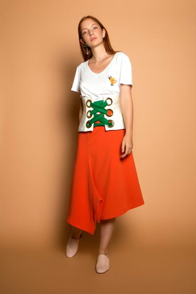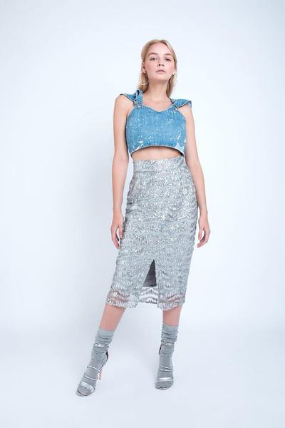 Ez már a Celeni vidám hangulatúra sikerült tavaszi-nyári kollekciója. Egy ilyen felsliccelt kék szoknya például 26 900 forintba kerül a márkánál.