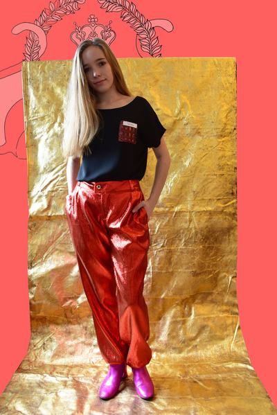 A 80-as évek stílusát idézi ez a fényes nadrág, ami 172 euróba, kb.53 400 forintba kerül a Je Suis Belle-nél.
