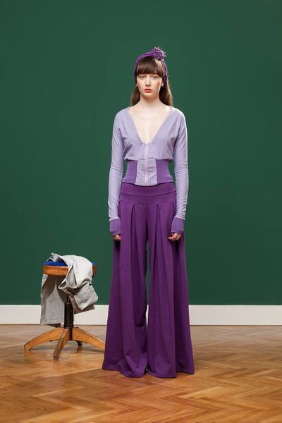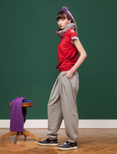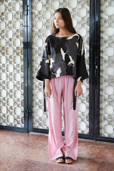 Tomcsányinál is megjelenik a bő pantalló és a derékban megkötős felső.