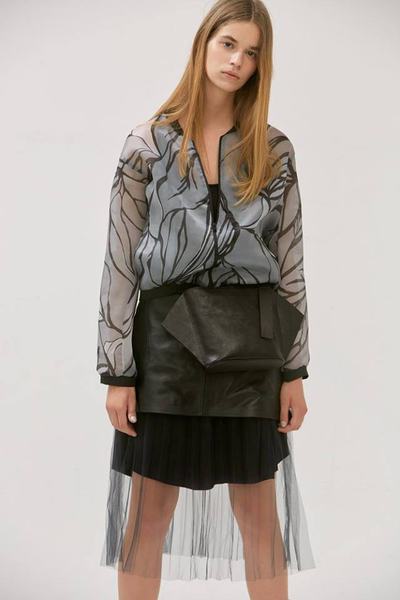 Bőr "tollas" kabát és tüllel megbolondított bőrszoknya Abodi Dórától.