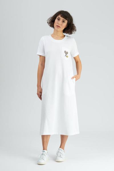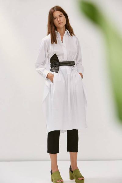 Fekete övvel átfogott fehér ingruha a Nubutól.