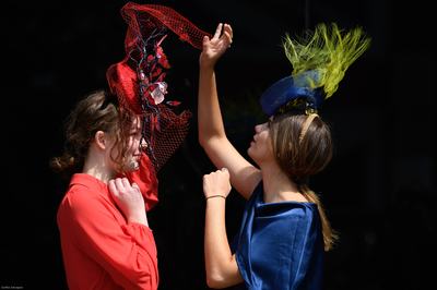 Bónusz fotó: Nem lehet könnyű egész nap nehéz kalapokban, magassarkúban, a szomjat pezsgővel oltva derbizni.