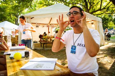 Ki lehet próbálni a falmászást bekötött szemmel, a homoktükör játékon keresztül megismerkedhetsz a Down-szindrómás emberek világával, és kérdezhetsz az érintett segítőktől is.