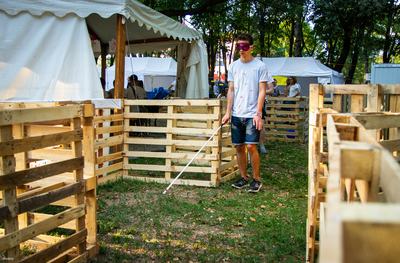 Minden egyes úthiba, fal, kanyar, szegély, többi ember, vagyis minden, ami neked fel sem tűnik, a hétköznapi életben, a labirintusban nehezítő tényező. A végén pedig azt is kipróbálhatod, hogy milyen felöltözni, ha látássérült vagy.