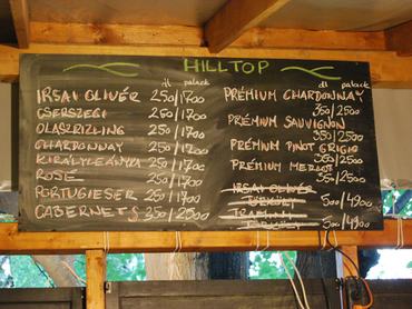 A Hilltopnál szinte a teljes középáras választékból válogathatunk, itt is egészen biztosan jóízű, hideg fröccsöt kapunk, és még egy korrekt buliba is csöppenhetünk a koncertek után. A borokat egységesen 250 Ft/dl áron mérik, itt sokkal jobban járunk, ha a literes palackot választjuk, mert minden palackos bor (0,75 l) jóval 3000 forint alatt kapható, és a literes fröccshöz nem kell a teljes palackot megvásárolnunk.