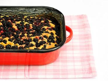 A szeder és a 3 evőkanálnyi nádcukor kivételével az összes szobahőmérsékletű hozzávalót a robotgép keverőtáljába tesszük. A géppel simára dolgoztatjuk a tésztát. A szeder harmadát óvatosan beleforgatjuk a tésztába. Kivajazott-lisztezett tepsibe vagy piteformába simítjuk a gyümölcsös masszát. A tetejére szórjuk a maradék szedret, meghintjük nádcukorral. Előmelegített sütőben tűpróbáig sütjük.