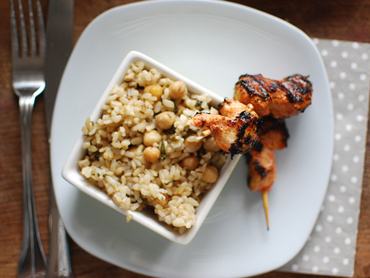 - Joghurtban pácolt csirkemellnyárs fűszeres rizzsel