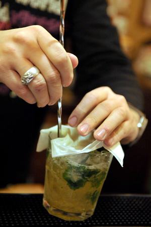 Egyébként a Mojito is a julep-félék családjába tartozik. Az elkészült ital gyors dekorációt is kap: tanga-szerűen felsodort szalvétát kötünk a pohár derekára.