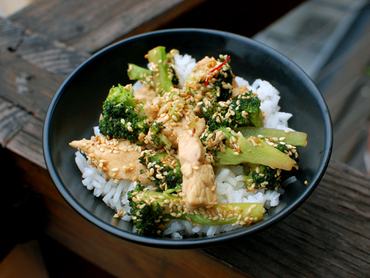 Tálalás előtt szórd meg a pirított szezámmaggal. Főtt (jázmin) rizzsel kínáld.