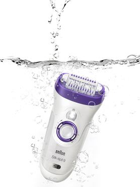 - A rugalmas használatra tervezett Braun Silk-épil 9 teljes mértékben vízálló, így a gyengédebb epilálás érdekében a kádban vagy zuhanyzás közben is használható