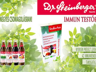 A Dr. Steinberger gyümölcs- és zöldséglevek a növények éltető erejét rejtik magukban, mely energiával tölti fel és harmonizálja a testet és a lelket. A gondosan összeválogatott levekből álló Immun Testőr csomag kifejezetten az őszi átállásra készíti fel a szervezetet, biztosítva az összes szükséges vitamint, ásványi anyagot és anti-oxidánst, melyek nélkülözhetetlenek az immunrendszer számára. A négy különböző ital, a lehető legszélesebb spektrumban támogatja testünk védekező rendszerét.