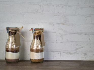 Rétegezd üvegekbe a hozzávalókat, és írj mellé használati utasítást. Abban annyi a fontos, hogy 2 tojás, 10 deka olvasztott vaj és úgy 3 deci tej kell a sütik elkészítéséhez. Ezek után 180 fokon 15-20 perc alatt sülnek készre. Nagyáruházakban kapható, ropogós sülthagyma-kockákkal, dióval, apróra vágott aszalt szilvával vagy őrölt köménnyel teheted a rétegeket izgalmasabbá.