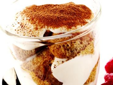 A babapiskótákat locsold meg a kávéval, majd vágd falatnyi darabokra. A többi hozzávalót dolgozd össze alaposan és kezdd el a rétegezést. Alul egy adag babapiskóta legyen, majd krém, újabb babapiskótás réteg és végül megint egy kis adag krém. A tetejét kakaóporral és egy kevés reszelt narancshéjjal díszítsd.