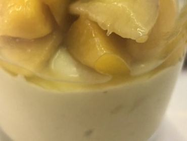 Pürésítsd az avokádót a cukor felével, majd add hozzá a lime-ot és a tejszínhabot. A mangót melegítsd össze a vajjal és a sziruppal, adj hozzá fűszereket, a cukor másik felét, majd tálald poharakban a krém tetején.