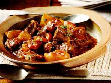 Dobd a forró zsiradékra a hagymát és a húsokat, majd 5 perc után öntsd alá a bort (és ha szükséges, egy kis alaplevet), fűszerezd és főzd kis lángon, lefedve legalább 60 percen át. Ezek után mehet hozzá a többi hozzávaló, amivel szintén kapjon még 10 percet.