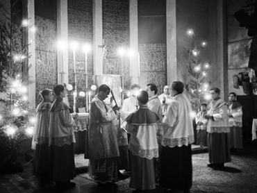 A karácsony katolikus liturgiájának sajátossága a három szentmise: az éjféli mise, a pásztorok miséje és a karácsonyi ünnepi szentmise. A liturgiamagyarázat szerint az éjféli mise Jézus (az Ige) örök születését, a hajnali pásztorok miséje a megtestesült ige földi születését, az ünnepi mise ezekkel együtt az ember kegyelmi újjászületését ünnepli.