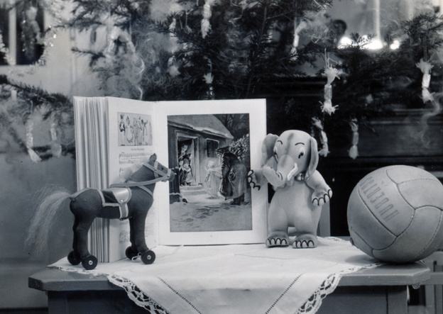 a lányokat babaházak, porcelánfejű babák, játék babakocsik, a fiúkat villanyvasút, bicska, ólomkatona, hintaló.