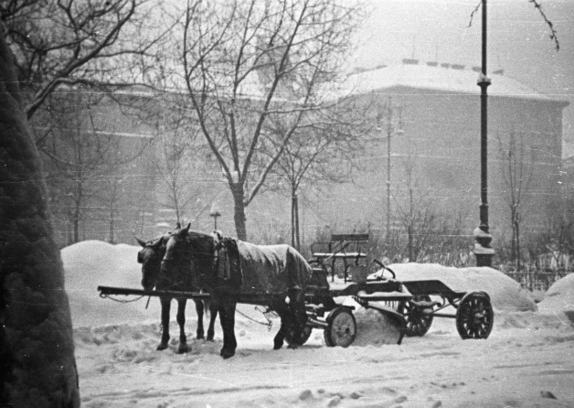 Beszámol arról is, hogy a „kétheti babfőzelék és pirított gríz után a bőség napjai következtek el”, mivel szereztek egy fél disznót, egy malacot, némi borjúhúst, sőt: cukrot, tejet és kalácsot is. A karácsonyt követő napokban Budapesten pokoli állapotok uralkodnak el: leáll a szemétszállítás, „a holttestek tucatjával hevernek az utcákon”, az ágyúdörgés elviselhetetlen, a kicsiny társaság pedig a pince-óvóhelyen vészeli át az ostromot. Fenyő háromheti bezártság után, január közepén merészkedik újra az utcára, végigmegy a szétbombázott Budapesten, és nem tudja felfogni, mivé lett szeretett városa. „Budapest kaputt, mi mindannyian kaputt” – állapítja meg keserűen. Szerencsére túlélték mindannyian az ostromot: Fenyő 1948-ban családjával együtt elhagyta az országot, Rómában, New Yorkban, majd Bécsben élt 1972-ben bekövetkezett haláláig. (Borítókép: Fortepan / Fortepan)