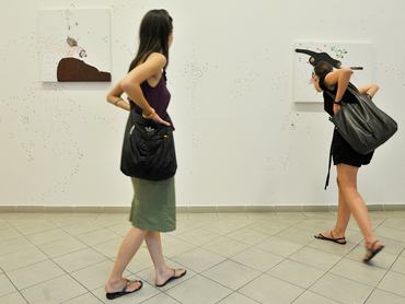 Már a Platán Galéria kirakatüvegén túlról is egyből látszik: valami nincs rendben. Az újonnan kiállított képek ugyanis önálló életre keltek, a vászonnal határolt fantáziaszülemények nem elégednek meg a négy vonal közé szorított léttel, többet akarnak. Így egyszer csak számtalan hangya és szárnyas hangya látszik lemászni a felületről, birtokba veszi a hófehérre festett falat, átszalad a szomszédos alkotáshoz, így téve lüktetővé az egyébként sterilnek tűnő kiállítóteret.
