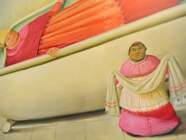 Egészen érdekes például, ahogy Botero Ádámja és Évája párbeszédbe kezd a mellette látható, Hans Baldung Grien-féle, többszáz éve keletkezett emberpár-ábrázolással. Az ilyenfajta kommunikációra bőven találunk példát a kiállításon, Botero ugyanis előszeretettel gondolja újra a művészettörténet legnagyobb festményeit: legyen szó Van Eyck Az Arnolfini házaspárjáról, Velázquez egyik alkotásáról, vagy éppen magáról a Mona Lisáról.