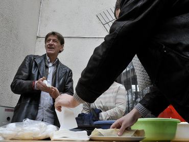 Később a hátsó bejáratnál, az amfiteátrum tövében Mucsi Zoltán sütött palacsintát: az éhes nézősereg türelmesen várakozott a sorára, miközben a színész hasonlóan türelmesen sütögetett és osztott. Na nem szóban, ahogy azt Kapától megszokhattuk, csupán palacsintát – valahogy úgy tűnt, mindenki meg volt illetődve a szokatlan szituációtól.