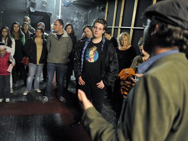 Már a Bárka programját nézegetve is az volt az érzésünk, hogy a színház semmit sem bíz a véletlenre: a közönség számára ritkán kínálkozó lehetőségek között találtuk például a teátrum földi halandók számára teljességgel ismeretlen zegzugait felfedő kulisszajárást, ahol Göttinger Pál rendező vállalta magára az idegenvezető szerepét. Az izgalmat nem csak a sok helyen ütött-kopott fekete falak és rejtett folyosók jelentették, hanem azok a bennfentes információk is, amelyeket a rendező utunk során folyamatosan, jó érzékkel el-elhintett.