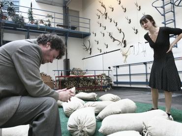 A mérkőzésnek még nincs vége! A szurkolókat buszra ültetik és irány a világvégi ipari park, sötétedik. A lelátók helyett szalmabálák – ilyen ez a bajor falusi idill – és bő másfél órán át fasírt szagú drámát szimatolok. A Vadászjelenetek Alsó-Bajorországban Alföldi Róbert rendezésében sokkolóan aktuális és nem csak ettől olyan emberközeli. Részévé válok a közösségnek, rámfröccsen a kiteregetett szennyes és összerezzenek, amikor a szemem láttára egy férfi kétségbeesésében sírni kezd.