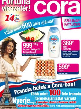 Cora: Csirkemell filé1199 forint/kg, Sertésmáj 299 forint/kg, Winny bacon szalonna 635 forint/400g, Hercsi baromfi párizsi 319 forint/kg. Az akció november 16-ig tart.