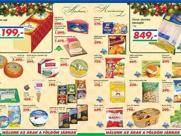 Auchan: Füstölt, főtt császárszalonna 949 forint/kg, Sertésoldalas 1 049 forint/kg, Sertéskaraj 1 395 forint/kg, Kolozsvári szalonna 1 159 forint/kg. Az akció december 22-ig tart. Egész decemberben: Minden kedden Zafír ásványvíz 39 forint/1,5l, minden szerdán Nagy és fia akácméz 999 forint/850g, minden szombaton burgonya 249 forint/5kg.