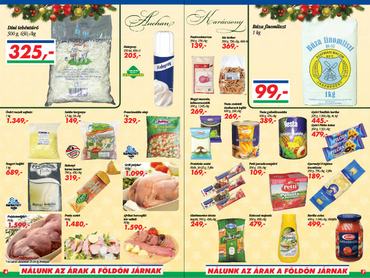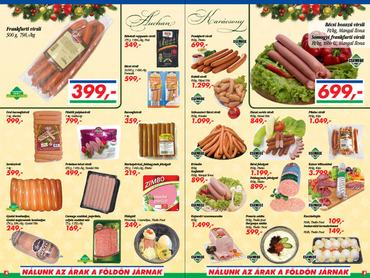 Cora: Hercsi Hús Baromfi párizsi 357 forint/kg, Füstölt hátsó csülök 899 forint/kg, Pick Rákóczi szalámi 2298 forint/750g, Gyulai kenőmájas 899 forint/kg, Birka Pörkölthús 1399 forint/kg, Marhalapocka1799 forint/kg, Marha felsál 2599 forint/kg, Marhacomb 1899 forint/kg. Az akció 2012 január 15-ig tart.