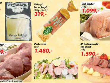 Auchan: Marhalábszár csont nélkül 1399 forint/kg, Bécsi hosszú virsli 699 forint/kg, Frankfurti virsli 689 forint/kg, Baromfivirsli 359 forint/kg, Kaiser téliszalámi 3799 forint/kg. Az akció december 31-ig tart. Egész decemberben: Minden kedden Zafír ásványvíz 39 forint/1,5l, minden szerdán Nagy és fia virágméz 999 forint/850g, minden szombaton burgonya 249Hiper-ármustra, azaz mi hol olcsó ezen a héten?