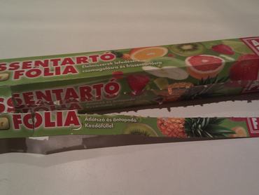 Az egyik legbénább és legmacerásabb csomagolása ennek van: anélkül nem is lehet lebontani a papírhengerről, hogy ne szakadna szét. Ha igazi kihívásra vágyik, ne habozzon, vásároljon be ebből a termékből! A fólia egyébként önmagához rendkívül jól tapad, ezért is olyan nehéz leszedni a hengerről. Egy kérdés azért felmerült bennünk: „Vajon ez az egyetlen fólia, amelyik a műanyaghoz is tapad?” A válaszra soha nem jöttünk rá…