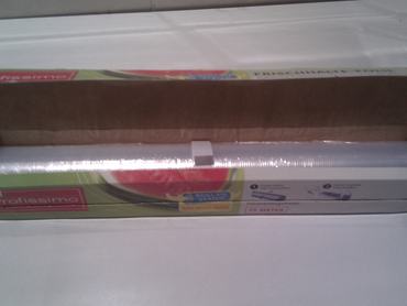 Egy olcsó Tesco gazdaságos termék. Kíváncsian vártuk, hogy ugyanolyan jól fog-e teljesíteni, mint a tesója, de miután kihámoztuk olcsó csomagolásából, kiderült, megint valami bóvliba futottunk bele. Ennél a fóliánál is több hosszú percet vesz igénybe a tekercs megkezdése. Ehhez képest kellemes meglepetés volt, hogy mennyire jól téphető a fólia, de nagyjából ennyit is tud. Letépéskor ugyanis ugyanazzal a lendülettel azonnal feltapad a kézre, ahol jól összerándul, mint a másnapos gyomor a meleg erőleves után, ezért vágáshoz inkább ajánlott az olló használata (de ez meglehetősen túlbonyolítja a dolgot). A fólia egyébként elég jól nyújtható, szépen kisimul az edényen, és műanyaghoz is megfelelően tapad.