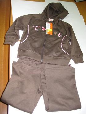 Kétrészes kisgyermek szabadidő ruha 98-128 méretig pink és piros színben. Kapucnis, zipzáras hosszú ujjú felsőből és nadrágból álló garnitúra. A kapucniban és a nadrág derékrészében húzózsinór található. A kapucniban lévő húzózsinór végén műanyag végelzárókat alkalmaztak. A húzózsinórok nincsenek rögzítve a termékhez. A felsőn feliratok vannak, a felsőre és a nadrágra az 58-as számot varrták rá textilanyagból. A kétrészes gyermek szabadidő ruha zipzáras felső részének kapucnijában húzózsinór van, a végein műanyag végelzáró kupakok találhatók. A nadrág derékrészében szintén összehúzó-zsinór található, az nincs legalább egy ponton rögzítve a termékhez. A felsőrész kapucnijában alkalmazott összehúzó-zsinór fojtási veszélyt, a műanyag végelzárók és a rögzítetlen derék összehúzó-zsinór balesetveszélyt jelenthetnek a kisgyermekek részére. A termék nem felel meg a termékbiztonsági követelményeknek. Az elvégzett kockázatértékelés alapján a termék használata fojtási veszély és balesetveszély szempontjából is súlyos kockázatot jelent a felhasználók részére.