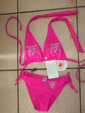 A fürdőruha felsőt a nyakban és a hát középső részén lehet két-két különálló szabadvégződésű funkcionális zsinórral rögzíteni. A bikini oldalán csomóval ellátott díszítőzsinór van. A kétrészes fürdőruha bikini felsőrésze nyakban és háton megkötős. A termék alap színe világoskék és rózsaszín. A melltartórészen, valamint a nadrágon "SWIMMING CLUB dance 2011" felirattal. A kétrészes lányka fürdőruha felső nyakában lévő zsinór fojtást, a hátrészen levő zsinór balesetet okozhat. A gyermek nyakán megköthető bikini felsőt viselve a bekötött zsinór a gyermek nyakára szorulhat és megfojthatja. A gyermek a hátul megköthető bikini felsőt viseli, ami játék közben beakadhat, és balesetet okozhat. A termék nem felel meg a termékbiztonsági követelményeknek. Az elvégzett kockázatértékelés szerint a Sun & Ocean márkajelzésű azonosító jelölésű nélküli kétrészes fürdőruha használata a bikini felső nyak- és hátrészén elhelyezett húzózsinór miatt súlyos kockázatot jelent a gyermekek részére.