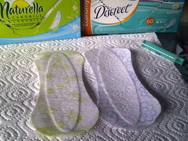 Hasonló a csomagolása mint a Discreetnek, és csak sajnos csak egész kevés eltérés van a betétek között is. Azt nem találtuk meg a dobozukon, hogy melyik cég gyártja őket, de azt igen, hogy melyik forgalmazza, és nem annyira meglepő módon ugyanaz a kettő. Szóval a különbség annyi, hogy formára minimálisan eltér a két betét, de ha választani kellene akkor már inkább a Discreet, mert a Naturella állítólagos kamilla illata szerintünk inkább vécéillatosítót idéz, de abból is a hihetetlenül büdös fajtát.
