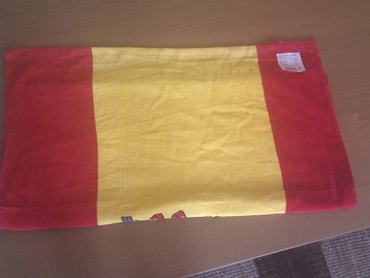 A múlt héten az óbudai Auchanban vásároltam, amikor megakadt a szemem a labdarúgó Európa-bajnokság jegyében piacra dobott termékcsomagon, köztük is egy spanyol zászlós törülközőn. Mivel nagy spanyol-drukker vagyok, nem bírtam ki, hogy ne vegyem meg. Nem is volt túl drága: 1490 forint.