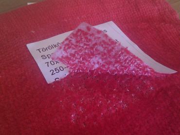 Amikor hazaértem, szerettem volna betenni a mosógépbe, de ott díszelgett rajta a termékismertető matrica, amit nyilván szerettem volna eltávolítani a mosás előtt. Óvatosan (mert utálom, amikor tépés közben elszakad) elkezdtem lefejteni a matricát a törülközőről, csakhogy ez nem hagyta magát: vitte magával a törölköző anyagát is.