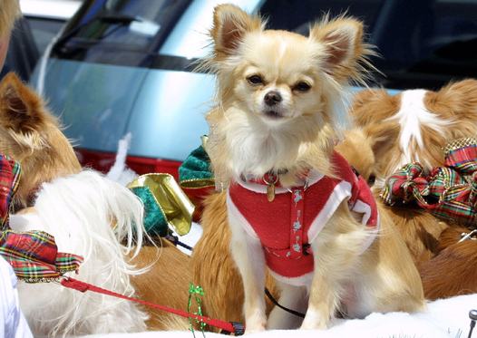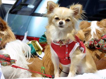 Aki azt szeretné, ha kutyája karácsonykor elegánsan várja Jézus születését, az rendelhet mikulás jelmezt vagy csokornyakkendőt ebének (19 dollár), a szukáknak pedig bársony szoknyácskát ajánlunk az ünnepi vacsorához (29 dollár).