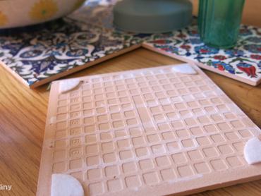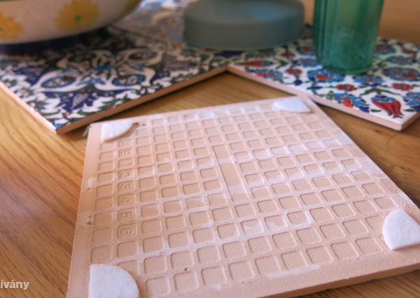 Lábos- és poháralátétekre minden háztartásnak szüksége van, tehát valamilyet mindenképp venni kell, ha nem akarjuk, hogy az asztalunk csupa pecsét legyen. A vicc az, hogy ezeket gyakran szürreális áron vesztegetik, különösen igaz ez a szebbekre - ronda van olcsón is, de az meg kinek kell. Éppen ezért sokkal izgalmasabb és kreatívabb megoldás, ha az ember szépen elslattyog egy csempe szaküzletbe, és kiválaszt magának néhány színes csempét, majd ezeket a négy sarkukon felszereli öntapadós székláb-alátéttel. Én annyira szeretem az enyémeket, hogy nem is pakolom el őket soha - egy nagy négyszögbe rendezem őket az asztal közepén, így magát az asztallapot is feldobják, ráadásul mindig kéznél vannak, ha leülünk egy kávéval az ebédlőben. Persze egyforma mintákat is választhat, akinek az tetszik, de nekem marhára bejön ez a bohém eklektika.