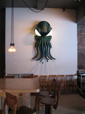 Egy Karl Dupéré-Richer nevű szobrász készítette a szobornak is beillő falilámpát, amihez állítólag többek közt kerti székek alkatrészeit, virágcserepeket, egy napernyőtartót, biciklikerekeket, 30 konzervdobozt, és egy kerti locsolócsőa darabjait használta fel. Az ihletet H.P. Lovecraft egyik rajzából merítette, akinél Cthulhu nem más, mint a végső borzalom megtestesülése. Dupéré-Richer az oldala alapján megszállottja ezeknek a művészi lámpáknak, ha ide kattint, akkor több alkotását is megnézheti. A lámpa egyékbént egy EtOH nevű montreali sörözőben van kiállítva.