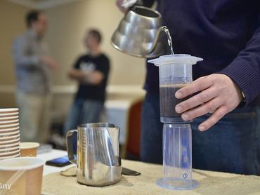 Harmadik versenyzőnk az Aeropress, mely 2005 óta létezik, és az elmúlt években világbajnokságot is rendeznek belőle baristák számára. A gépet Alan Adler, a Stanford egyetem oktatója találta ki,