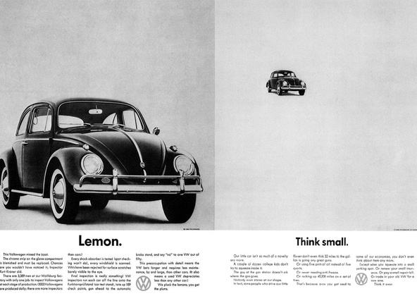 A fogyasztók jó része gyanakvó (sokszor valóban joggal is), és csak üres beszédnek tartják a reklámokat, mondván, á, ez túl szép, hogy igaz legyen. A hihetőség és hitelesség kedvéért ezért jó taktika lehet rámutatni egy termék esetleges hiányosságaira is. Az egyik leghíresebb példa erre az amerikai piacra készült első Volkswagen bogárhátúk reklámkampánya, amely a Lemon címet kapta. A szövegben az állt: “Ez az autó nem került be a szállítmányba: a kesztyűtartón lévő krómcsík foltos, ki kell cserélni. Lehet, hogy ez sokaknak fel sem tűnne, de Kurt Kroner minőségellenőrnek feltűnt, ezért visszatartotta. Mi kiválogatjuk a citromokat, hogy önnek csak a szilva jusson.” Azzal, hogy beavatta reménybeli vásárlóit a minden részletre kiterjedő minőségellenőrzési folyamatokba, a Volkswagen hosszútávon is hitelt nyert. A “Merj kicsi lenni” kampány keretében pedig meghirdetett autó reklámszövegének hangvétele, őszintesége és formai letisztultsága keltette fel a fogyasztói társadalom figyelmét. A Lemont minden idők legjobb kampányaként tartják számon, de mindkettő tankönyvi példa lett a reklámszakmában.