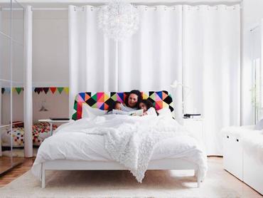 Az első oldalak hagyományosan olyan enteriőröket mutatnak be, amikbe bárki azonnal beköltözne mindenfajta különösebb kérlelés nélkül és élne ott boldogan egészen a 2016-os katalógus megjelenéséig. 2015-ben a letisztult darabok mellett színes, absztrakt megoldásokat ajánl a svéd cég – ilyen a nagyon színes, mégis bármely típusú szobába illő geometriai mintás fejtámlás ágy (a támla egyébként cserélhető, így ha pár éven belül megunja, be tudja majd szerezni a legújabbat). Egyébként ez a vonal több új bútoron is visszaköszön, így sokkal egyszerűbb dolga lesz azoknak, akik egy kis életet szeretnének vinni például a nappalijukba, hiszen egy ilyen kanapéval azonnal meg is van a szoba központi eleme.