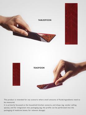 A lapos, szakácskönyv jelzőnek is beillő fejlesztés ugyanis sokszögeinek köszönhetően többek között evőkanálként és teáskanálként is funkcionálhat a konyhában, ami igazán jól jön, mikor sütésnél kiszeretnénk mérni a megadott mértékeket a lisztből, sóból vagy a fűszerekből. – írja a core77.com, akik az év egyik dizájner termékét látják a fejlesztésben.