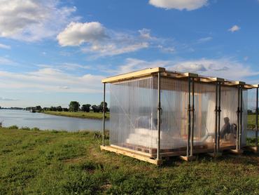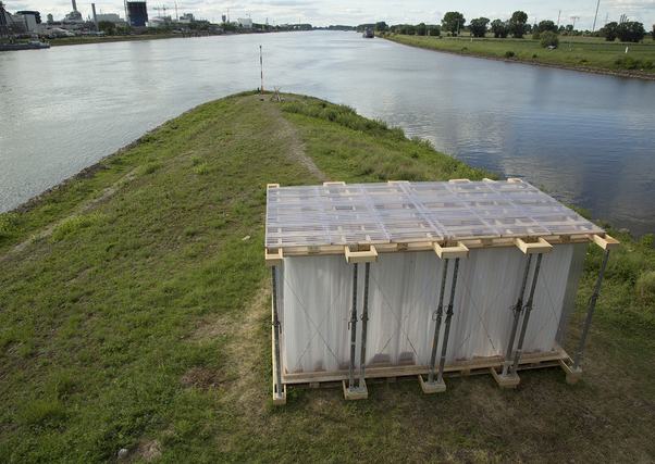 A németországi Mannheimban a Theater der Welt elnevezésű színházi fesztivál alkalmából fiatal tervezőket kértek fel a világ minden tájáról, hogy olcsó, mobil szálláslehetőségeket tervezzenek – derül ki a De Zeen magazin cikkéből. A kikötés egy önálló szoba volt, amit csak újrahasznosított vagy talált anyagból lehetett összerakni, és mindezt 250 eurós maximum árból kellett kihozniuk.