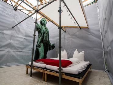 Irodalomrajongóknak különösen ajánlott lehet a Monumotel, mely szintén emelt állványzaton kapott helyet, így belátni sem lehet, ráadásul egy Friedrich Schiller szoborra dobálhatja a ruháit, mintegy szobainas gyanánt.
